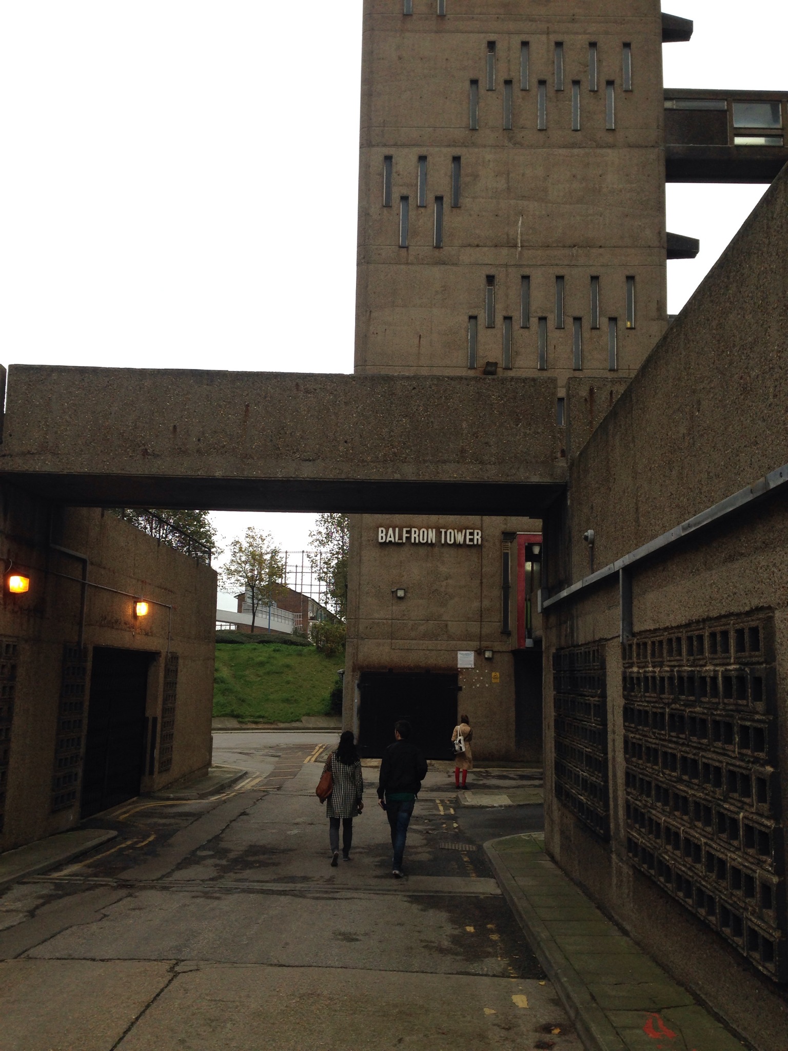 No, I explain. We’re off to tour the Balfron Tower, and are looking for a cuppa.