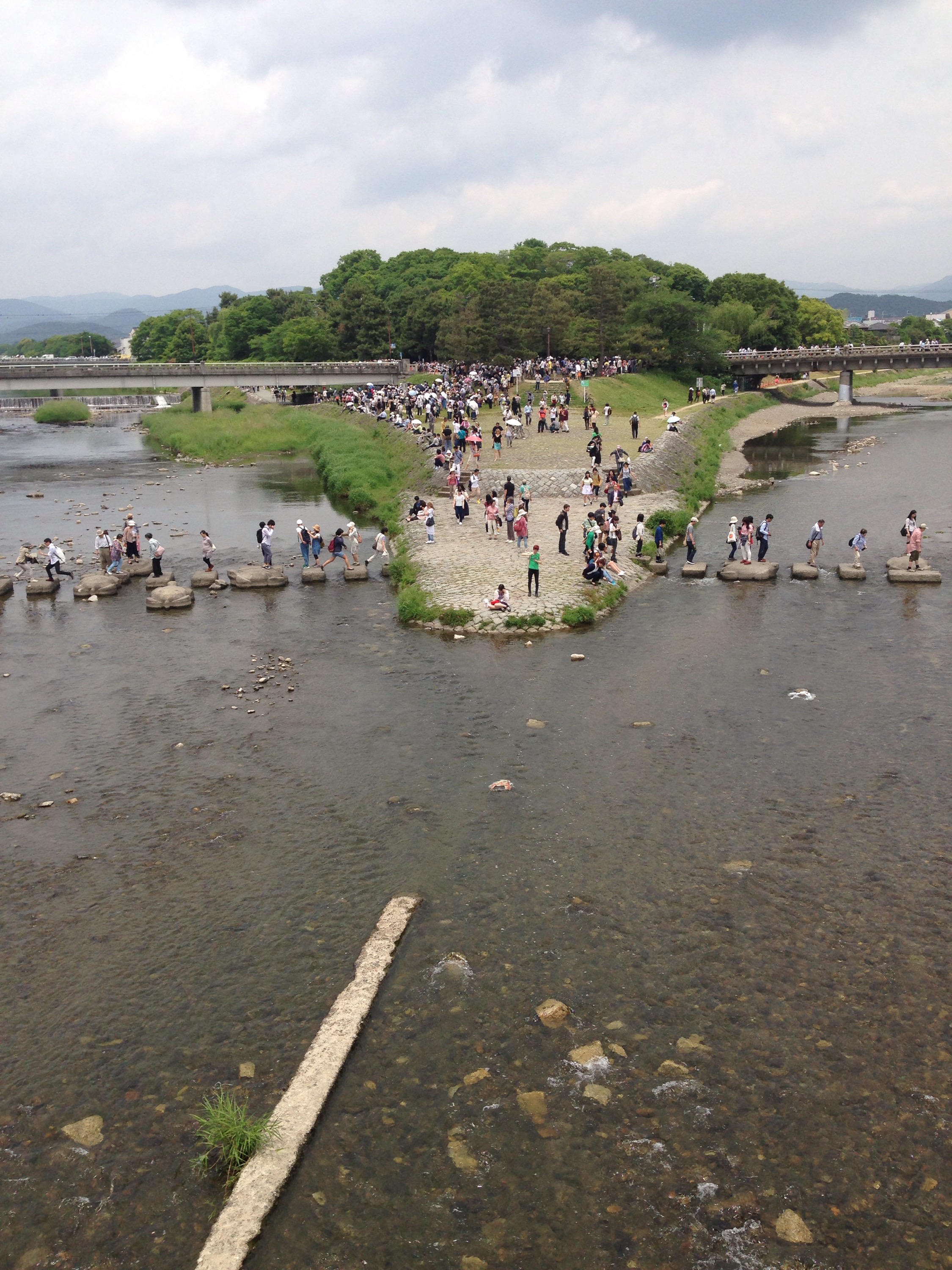 Kyoto is a city that makes most sense by bike. It’s small enough and beautifully contained by its surrounding hills, so it’s perfect for pedalling. We cycled along the Kamo river and I got over-excited by Tatami Galaxy nerdery, as outlined here. We watched a parade heading over the river with horses and strange lanterns. It was the Aoi festival, we discovered, thanks to some quick googling. We had lunch among ladies who lunch at a vegetarian restaurant by Kyoto university, and then cycled up alongside the Philosopher’s Path, a hillside walk named after some 19th century sensei. We visited some good bookshops: I now have a guide to the best train journeys of Britain from 1984. In Japanese. Will surely prove to be very useful indeed.