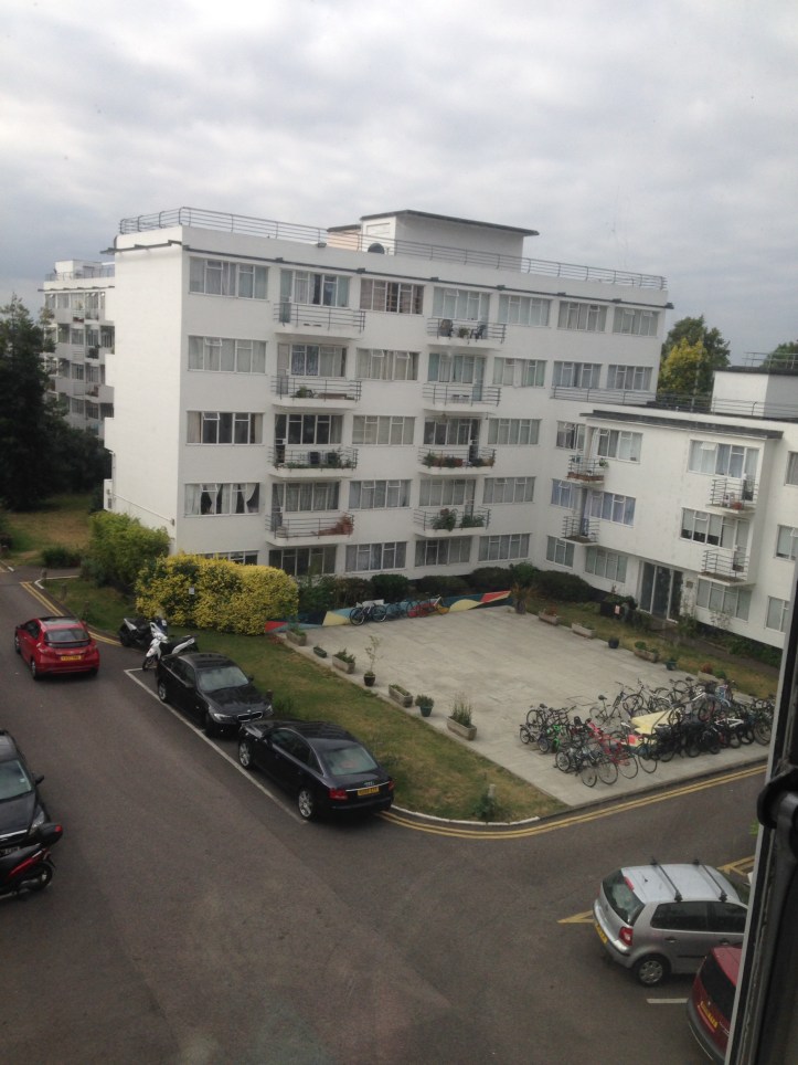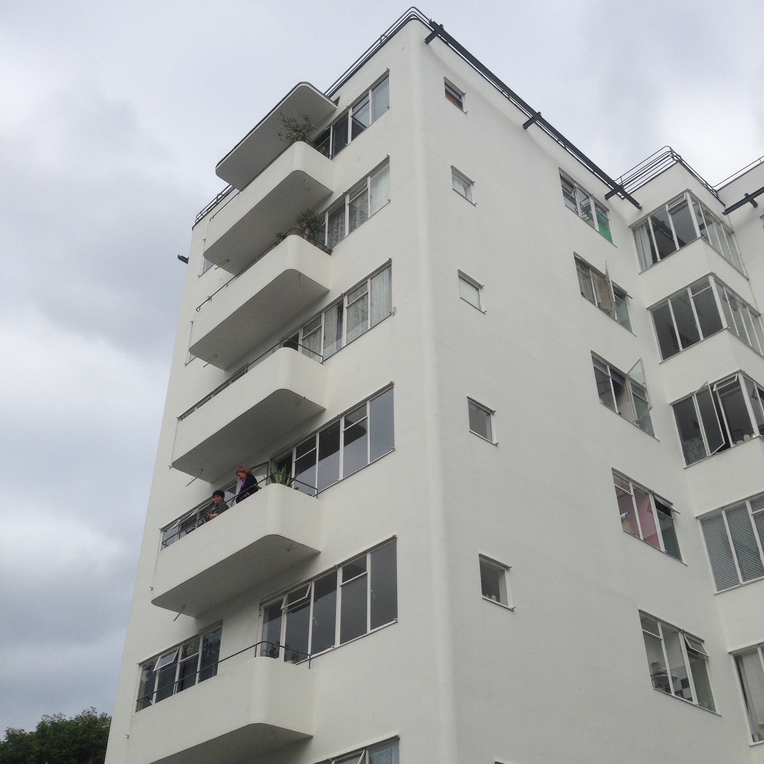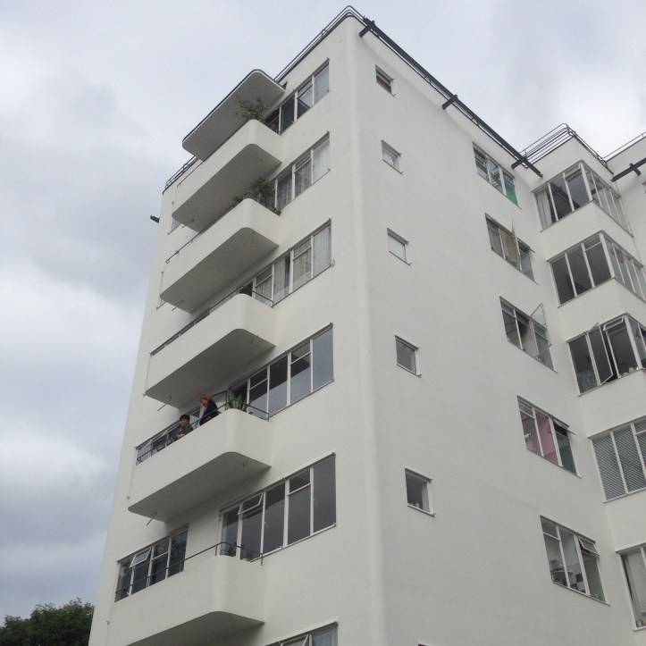 Pullman House was celebrating its 80th birthday. Its architect, Frederick Gibberd, was only 23 when it was commissioned, and went on to be involved in lots of notable modernist projects, including Heathrow Terminal 1, Liverpool cathedral, and Harlow New Town, which my phone attempted to correct to Harlow New York.