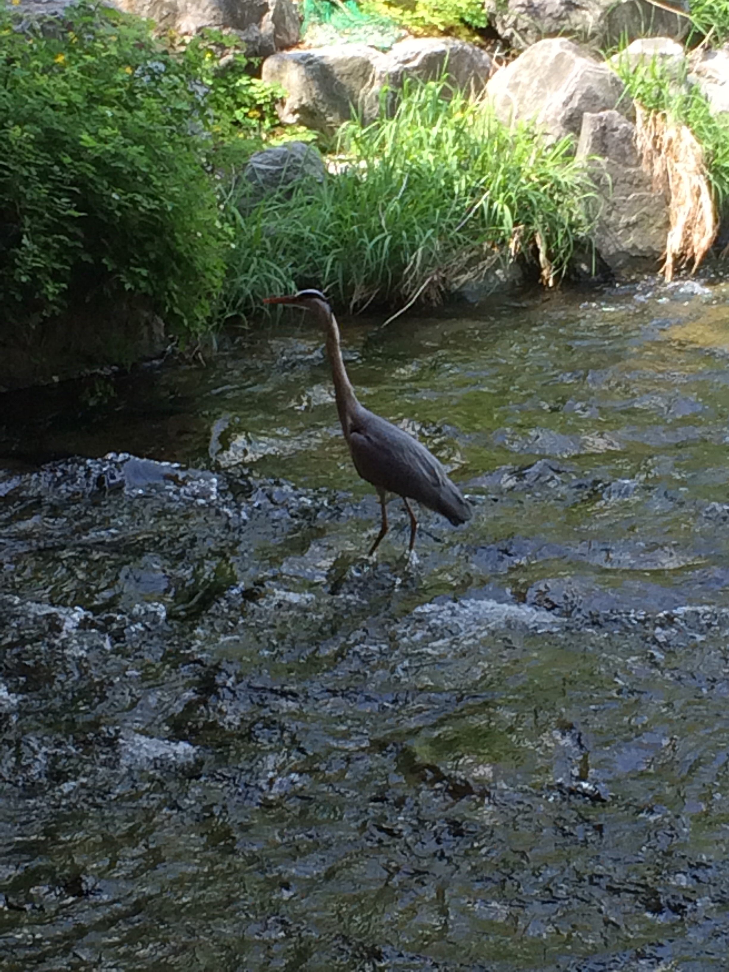 After dropping our stuff off at the hotel and with five pre-check-in hours to kill, we headed west along Cheonggyecheon, a restored stream through the middle of the city which had once been an elevated highway. We saw fish, a heron and an old man in a parental advisory: explicit content baseball cap.