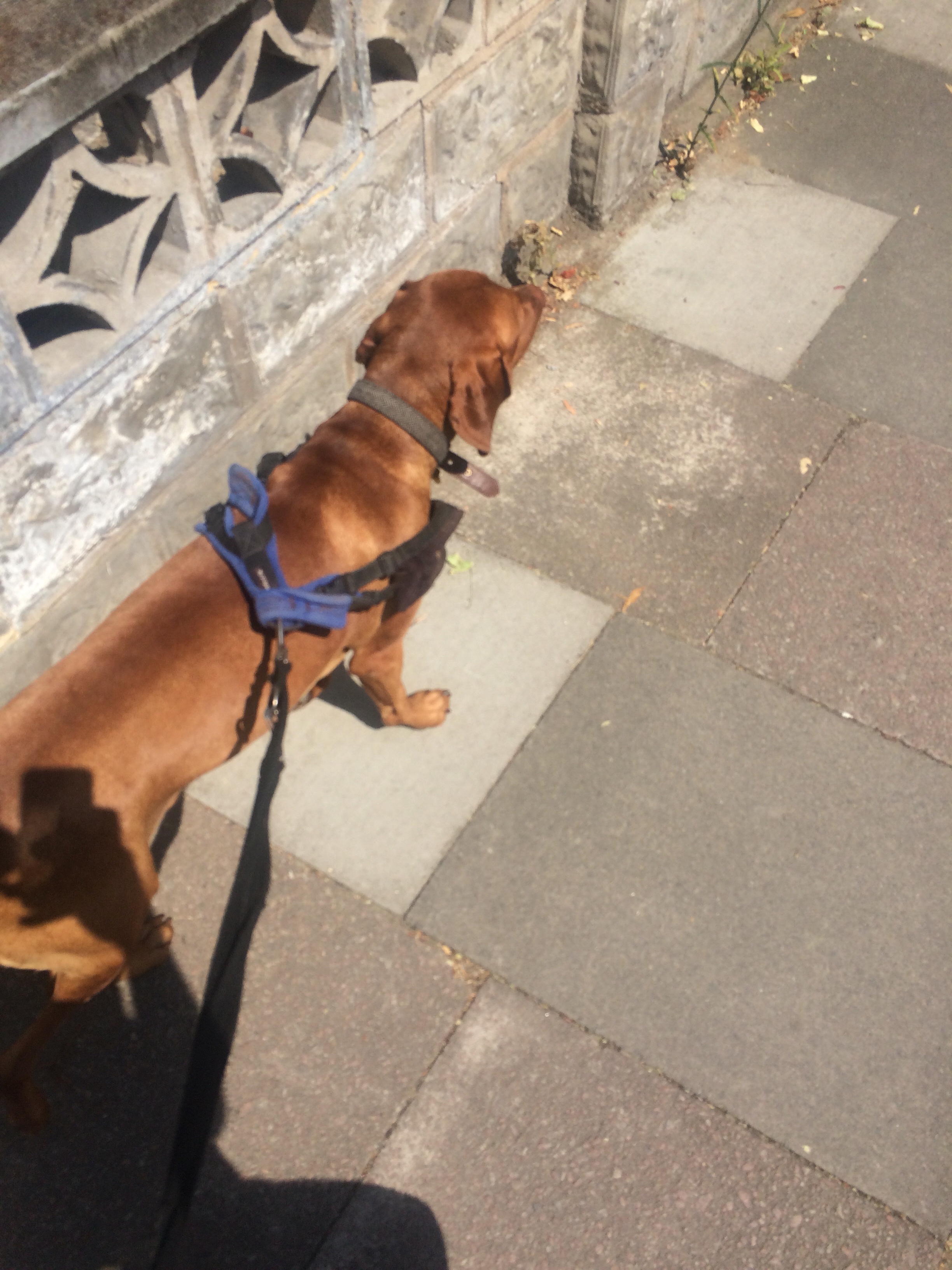 – Taking my friend’s dog Arthur for a walk, and reaching a point where he refused to go on, I refused to go go back, and we reached a silent impasse while passers by passed by. It was a happy moment of inertia