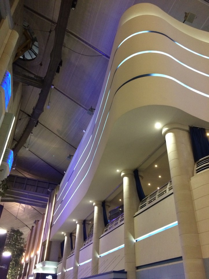 From here, I had to walk on the road past the taxi rank in front of north Greenwich station, as the pedestrian walkway was out of action. Here, with its piped muzak and armies of young men in high-vis, was the Millenium Dome. I went in to have a look, and was politely hassled by security who realised I probably wasn’t going either to the pop concert or to enjoy the Harvester restaurant. I took some pictures, wandered around in a daze, and left to get the bus back to where I started from.