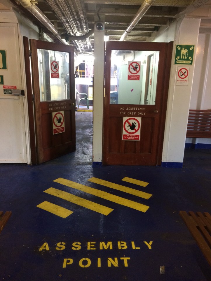Pedestrian traffic on the ferry has been minimal for decades, but the masses of seating – including separate, now locked, smoking areas – in the belly of the ferry suggest a time when greater capacity was needed. The John Burns, as this photo from when it first came into operation indicates, has space for a thousand passengers. Soon, it, along with its two sister ships, will be towed to France to be dismantled.