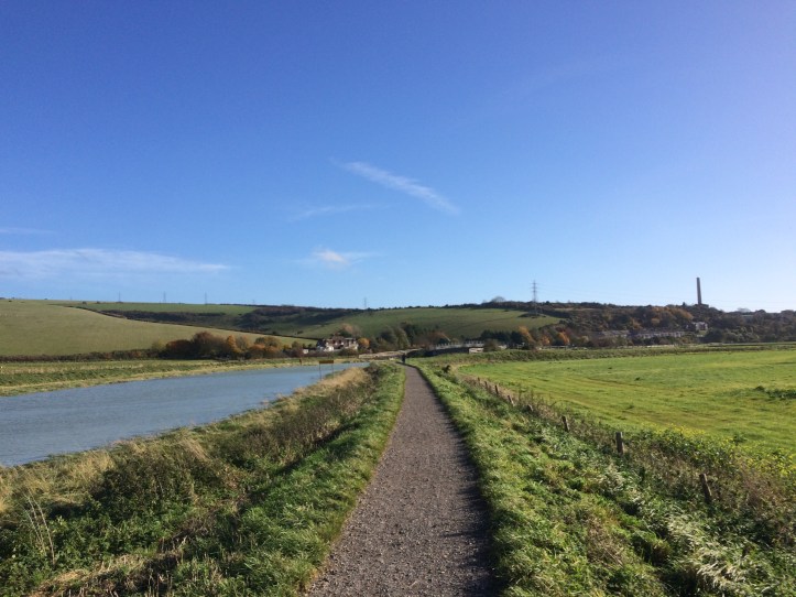 Climbing back up onto the hilltop, I pass several cows then confuse four artfully positioned sheep for a stone circle. From this hill, there are good views towards Brighton, and the fading autumnal sun stretches my lanky shadow to ludicrous lengths.