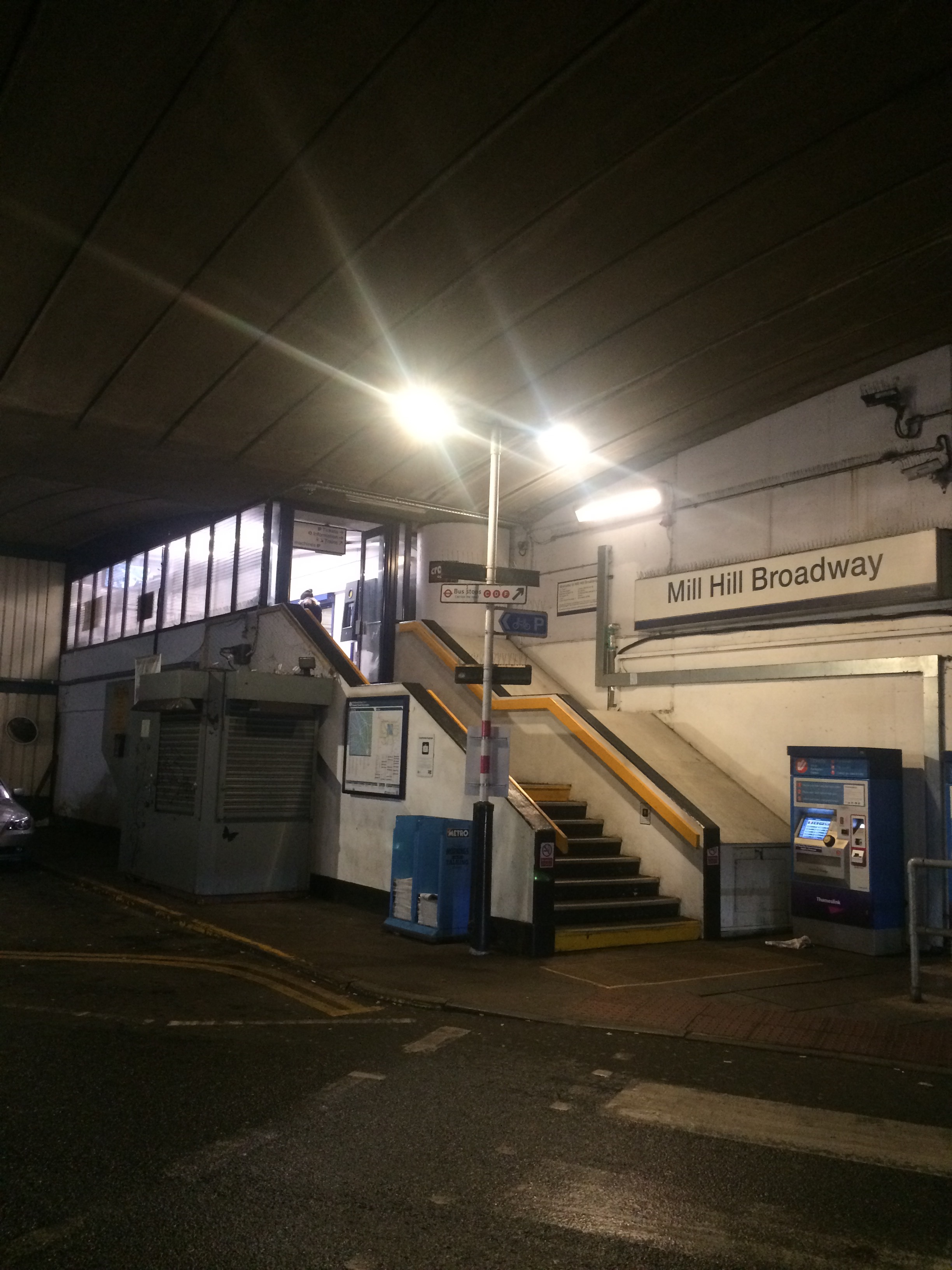 Mill Hill Broadway station is one of the least beautiful in London. Its entrance is beneath the M1 motorway, whereas the similarly grim Hendon station sits alongside it.