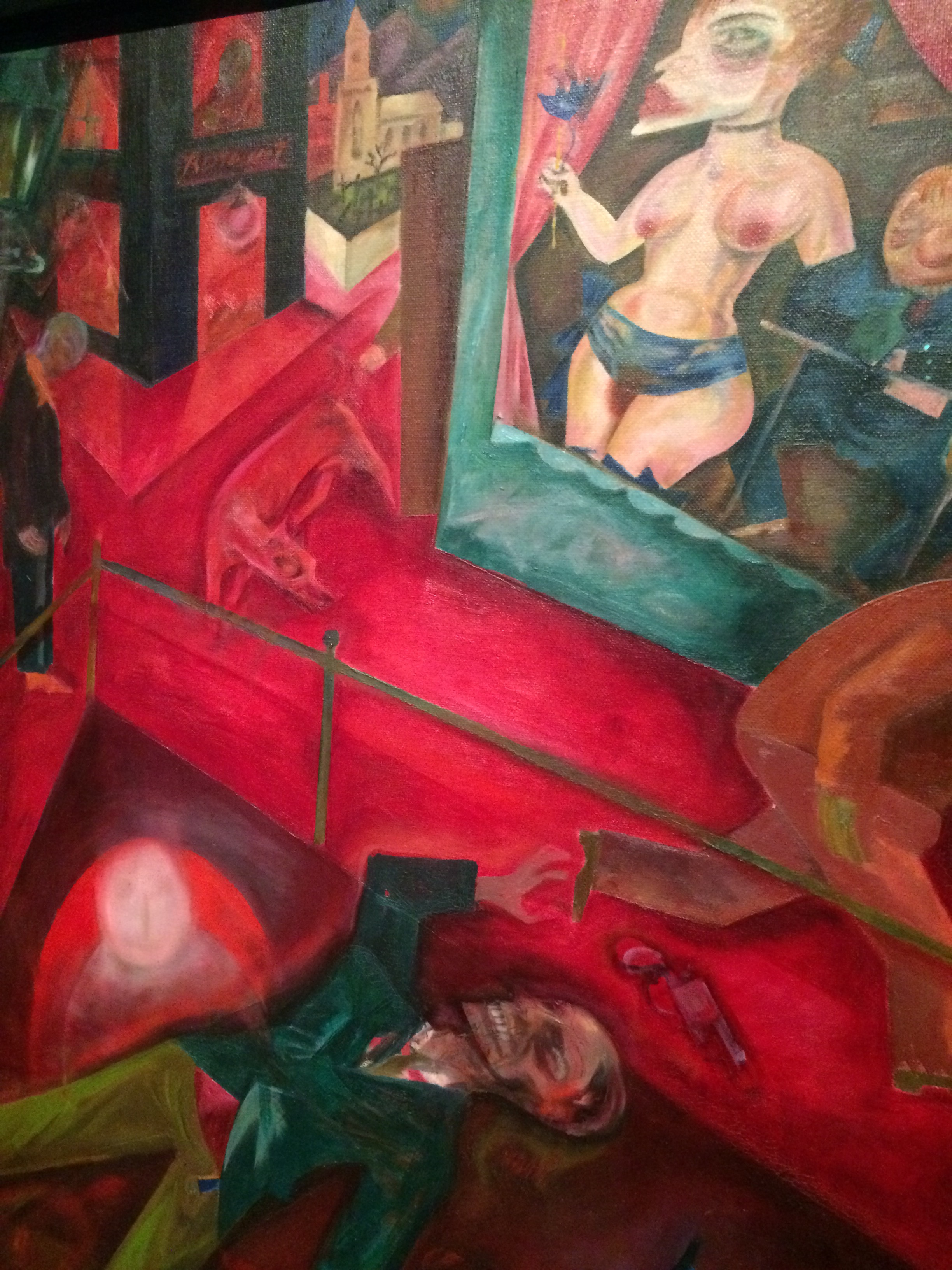 I escalated up an escalator and then got lucky and found a free exhibition on magic realism, which brilliantly presented Germany’s national psychodrama between the wars. So: lots of lurid Weimar antics, with suicide, fever dreams, impending doom and repressed sexuality never far from the surface. Dreams and nightmares on canvas, portentous but never pretentious. Well, maybe slightly pretentious. And then a drawing by Lea Grundig, a German Jewish woman, completed in 1943 after she had fled the country for Palestine. You don’t have to be a sophisticated beret-wearer to appreciate the horrors contained within.