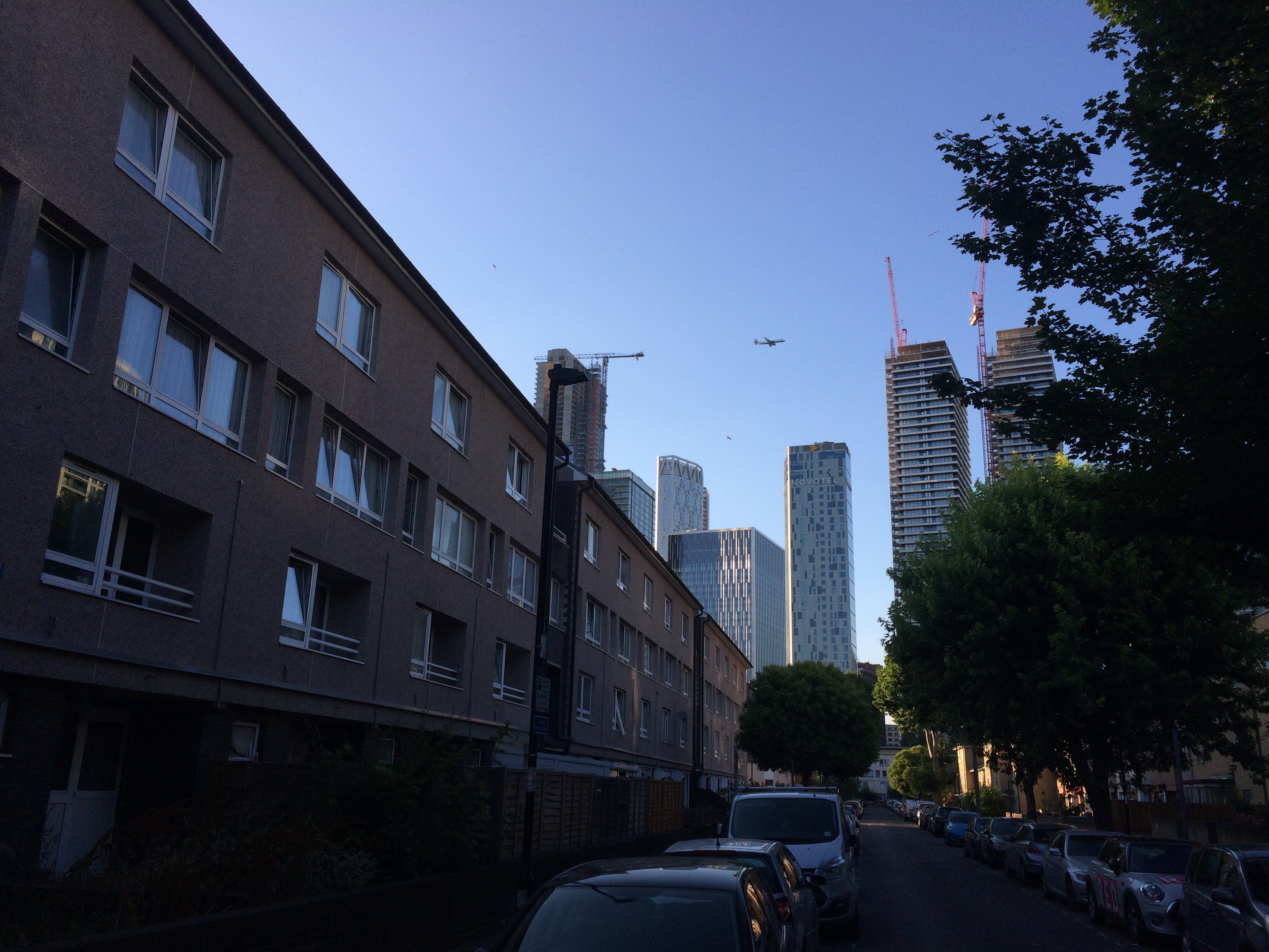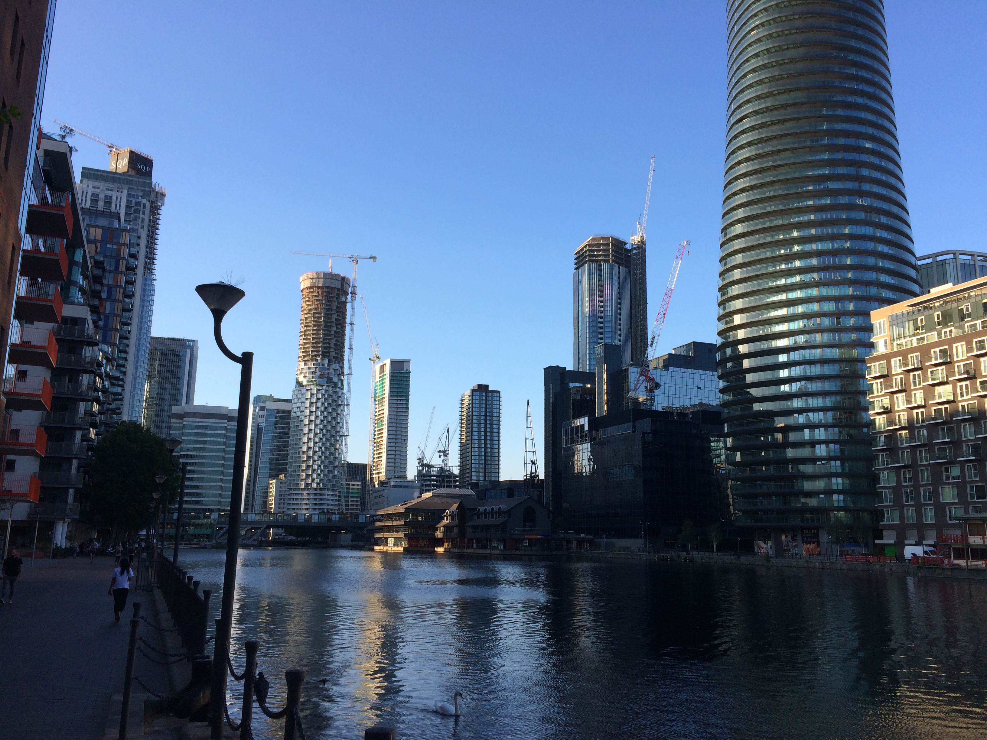 Millwall inner dock itself was a good spot to enjoy the contrast between the community feel of the streets and estates we’d walked through, with kids playing football and locals hanging out chatting on street corners, with the ever-encroaching tide of shiny, often half-empty towers and empty, windswept plazas and private lawns. Standing, as I was, between from where we have come and where we seem to be going, I know which I prefer.