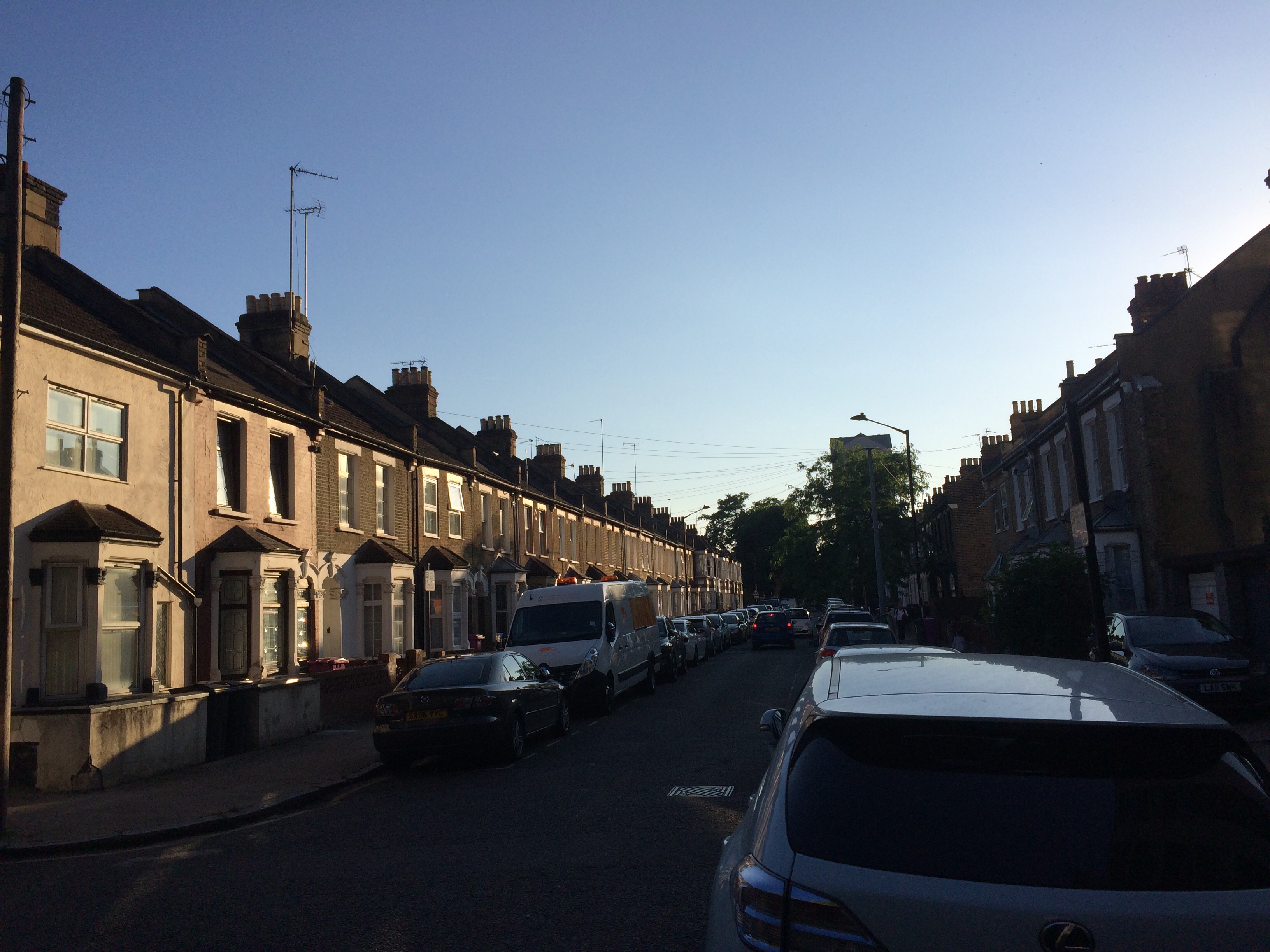 We headed inland to explore, first leaving the shore to take a look at an old pub turned Indian restaurant. The name was still carved into some of the building’s stonework: the Blacksmith’s Arms. A beerhouse that opened in 1895. Still had a pub football team as recently as the 1980s. Now a single Victorian building surrounded by flimsy new-builds, like the apartment block in Batteries Not Included.