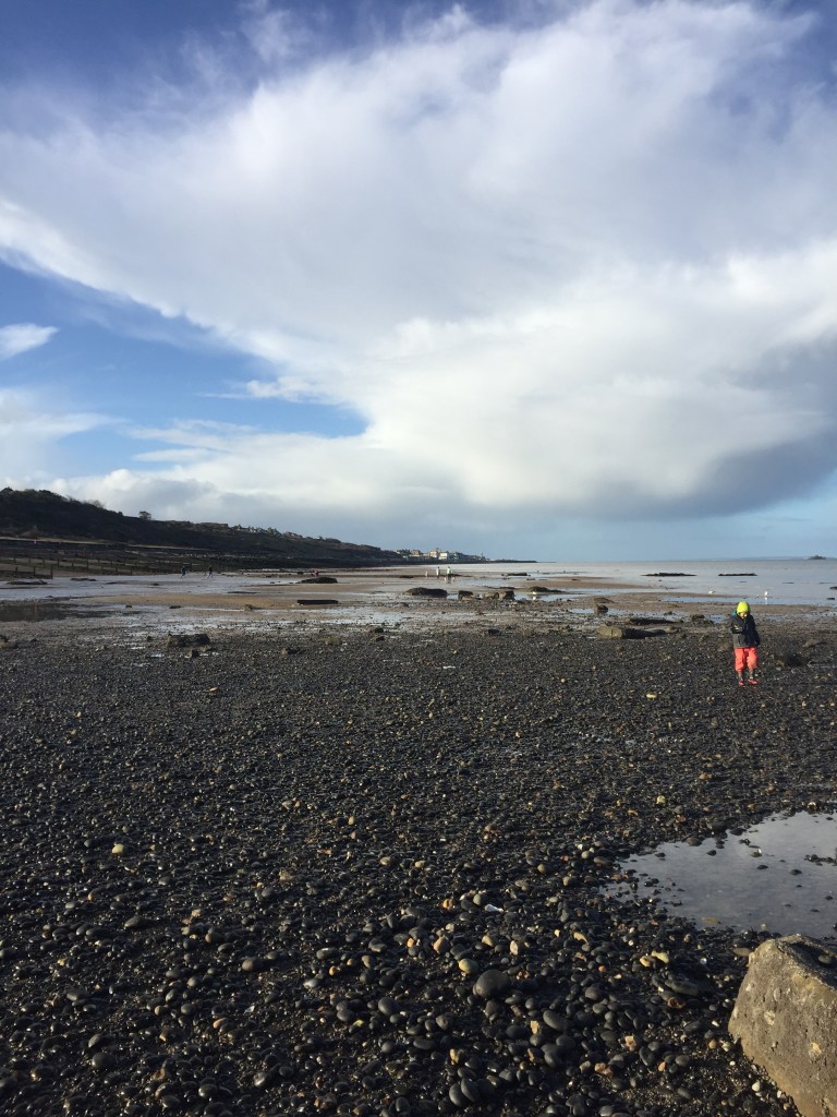 A Sunday morning spent seeking fossils at low tide. A quick cycle along the front, past dogs and families and passing rain clouds. An investigation into mud and shell and sand. And a brief intrusion by what on first glance appeared to be an escaped piglet.