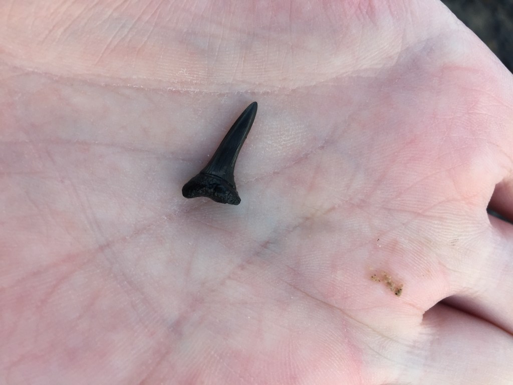 But while I was clambering on rocks and staring out to sea, Ruth persevered, and was rewarded with a fossilised shark’s tooth.
