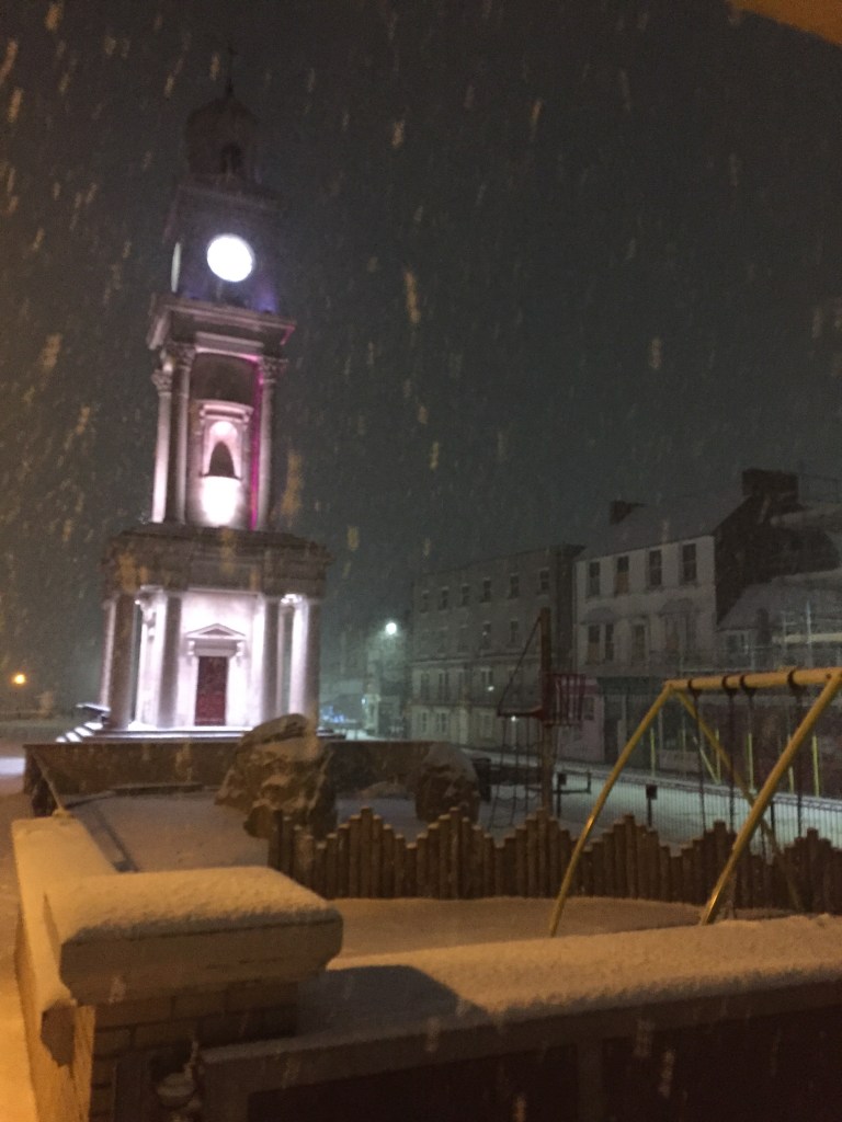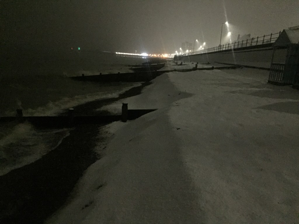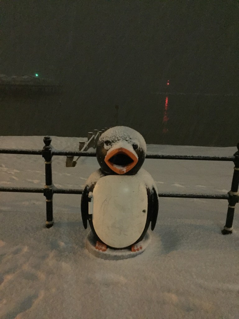 I ran to the pier along the shoreline, and then beyond, to the clock tower, before heading back up the middle of the road, as pavement and tarmac had become one thanks to the fresh, soft covering of frozen water crystals.