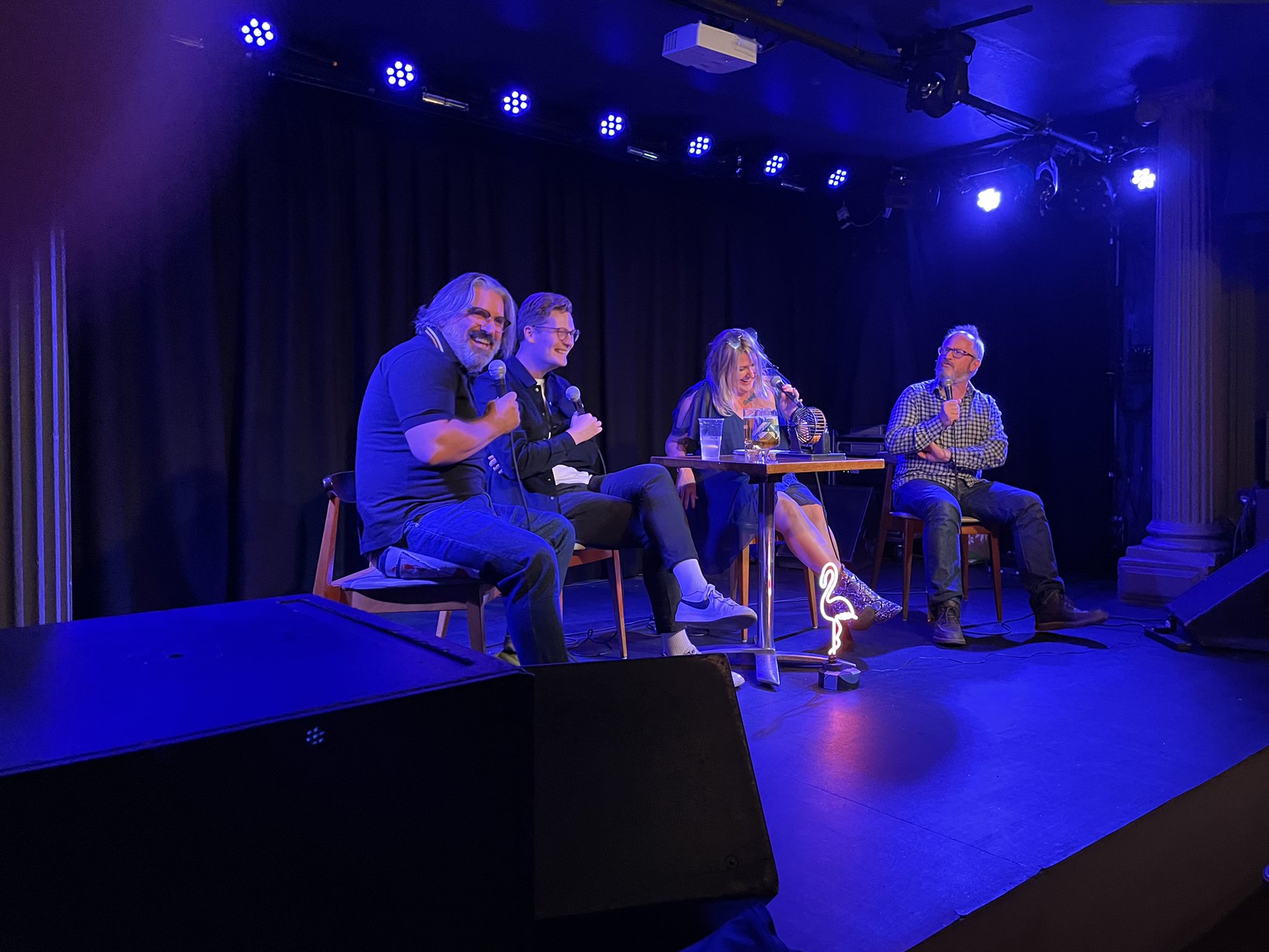 The Comedy Arcade exists primarily as a podcast, but here three guests (Rich Wilson, Robin Morgan, and Robin Ince) have been lured out of the audio ether to chat in front of some drunk people in north London.