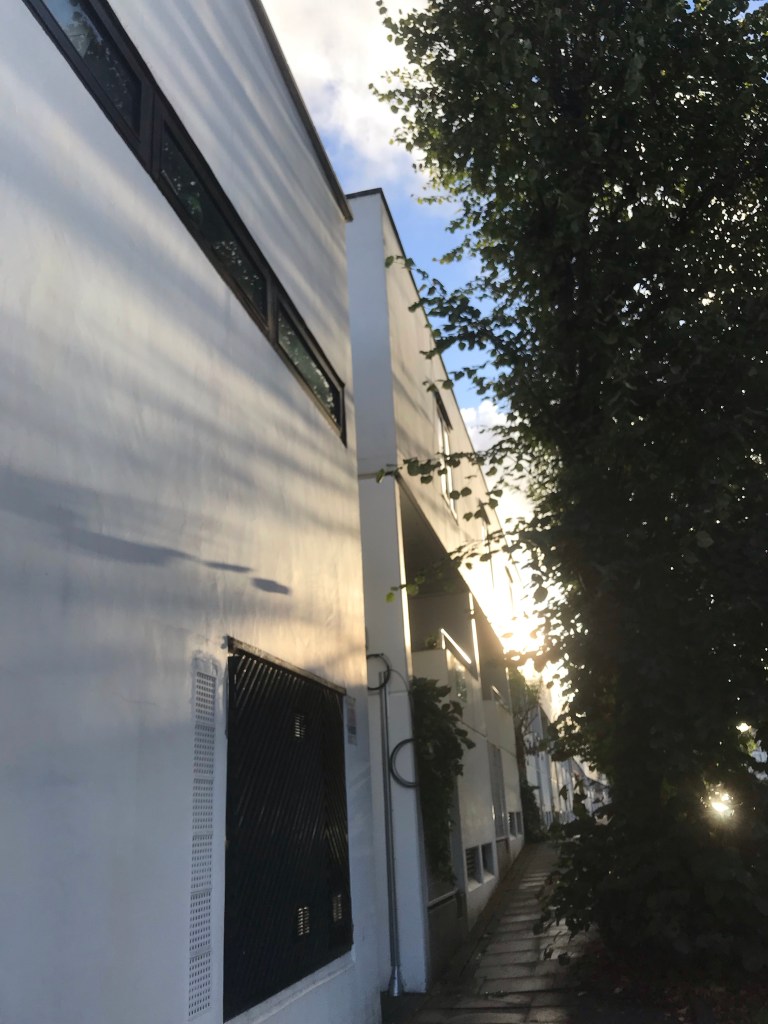 Walking past Gospel Oak station, we come to Mansfield Road and its beautiful lines; in the unseasonal sun the white block seems to stretch on forever.