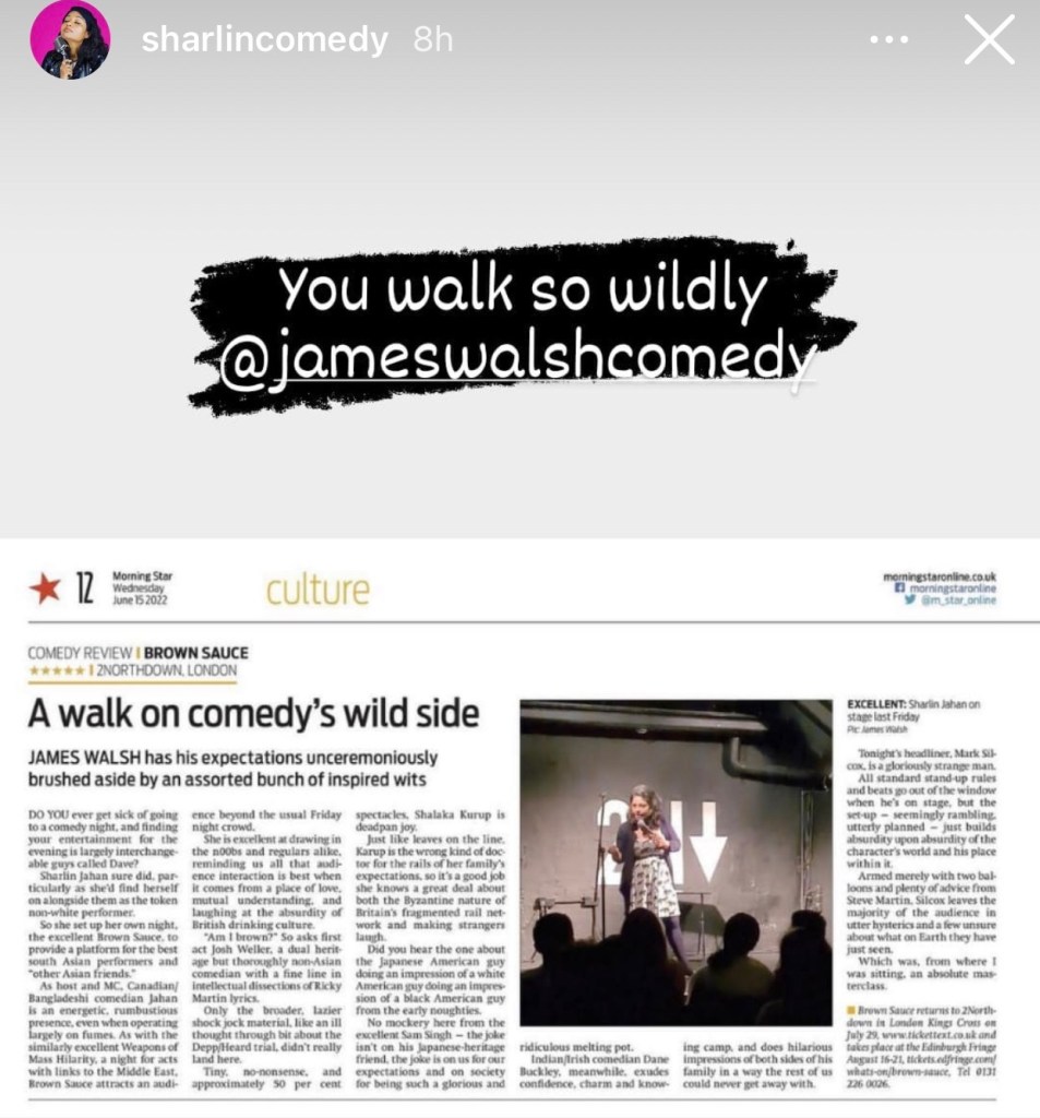 So far I’ve written about Sharlin Janan’s fabulous monthly night Brown Sauce, and the debut night of Julia Masai’s outsiders jamboree Comedy From Hell.