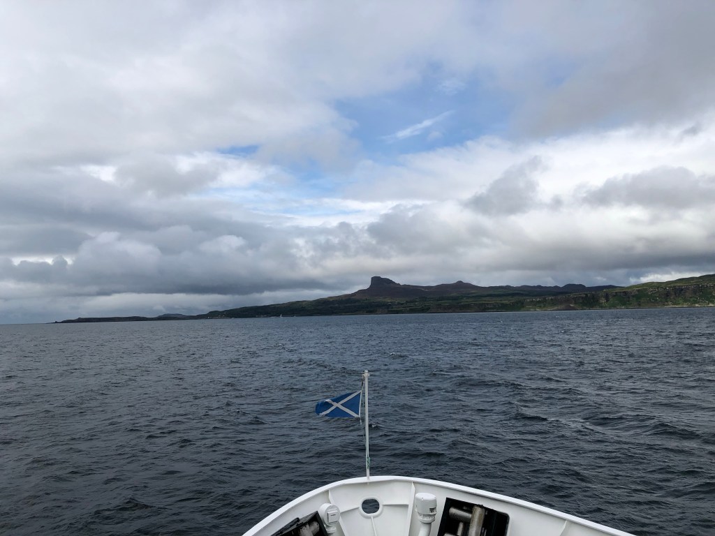From the ferry, Eigg comes into focus slowly, gradually. It’s a shimmering thing, dominated by the rocky outcrop An Sgùrr.