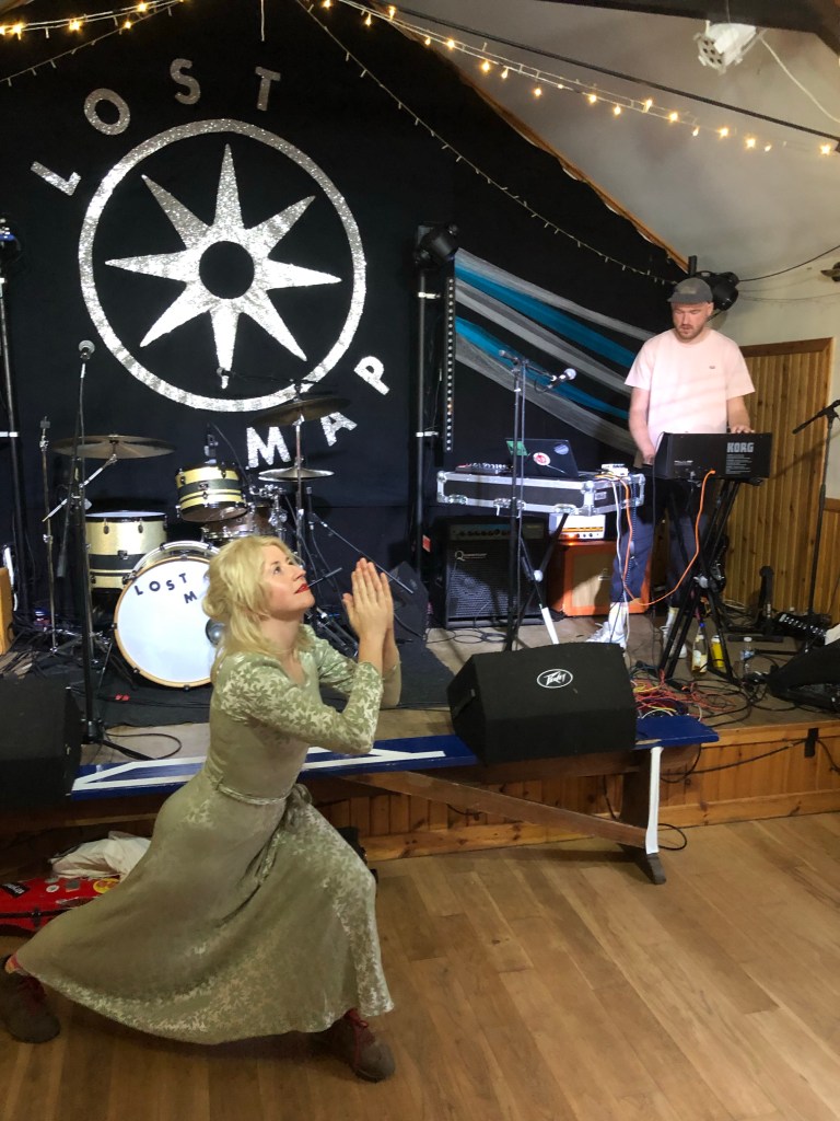 All performances take place in or around the island’s cèilidh hall, a short wooded walk up from the harbour / cafe / shop, with its exciting new shower block and old, free-wandering dogs. We’re treated to a mix of Lost Map acts, guest stars, supergroups and superstar DJs.