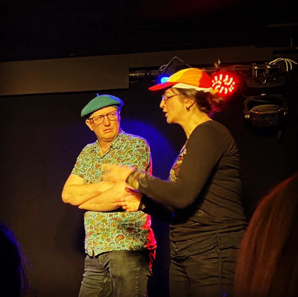 - Picking up bits of paper during the interval, then chatting with Greg and Naomi from the stage before belatedly noticing Thick ‘N’ Fast waiting to set up