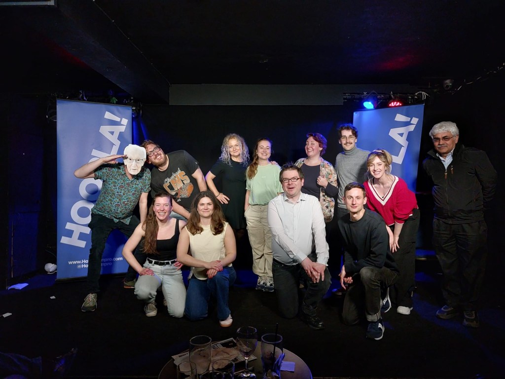- Me congratulating myself so much on the funeral sketch that I forgot I was in the Larry the Chimp one, and running up to the stage