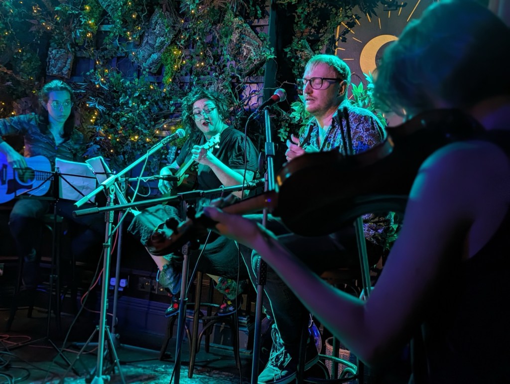 We did four songs, two from last time (Doris Wu and Joy In The Morning), and two new ones, Even Keel and Hymn for the Ruins, both about the end of the world. We also boasted a new member, in El, on bass.