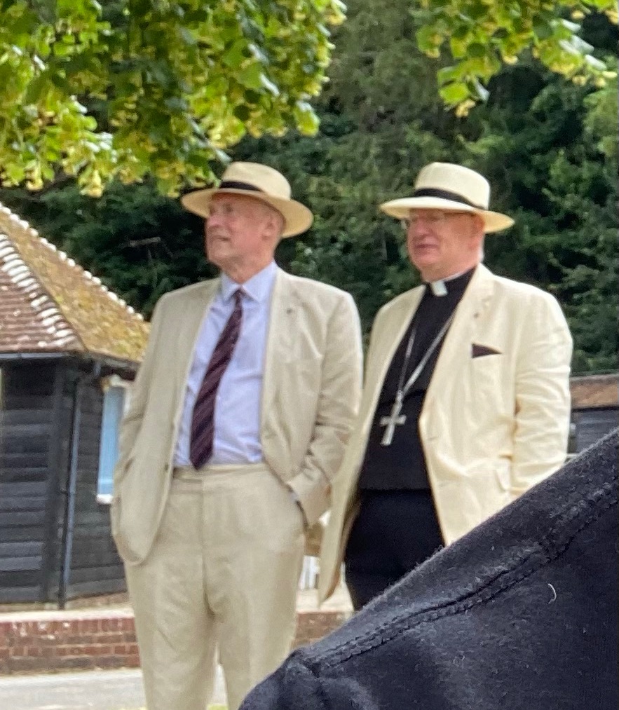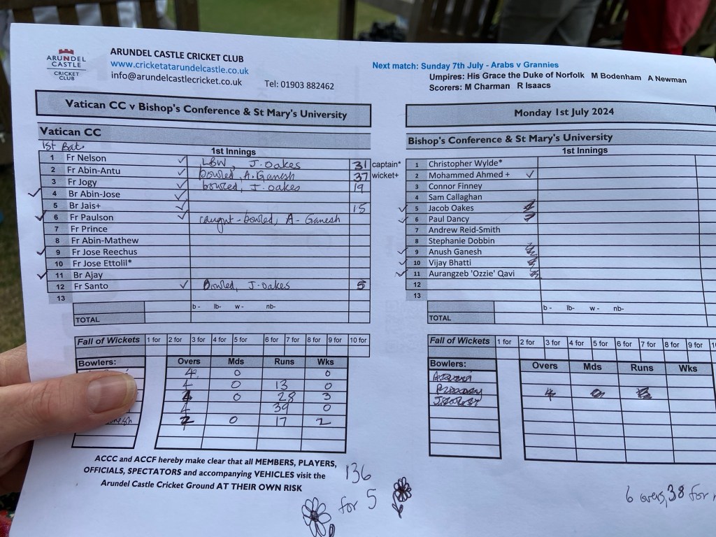 As we walked past the dugouts (gazebos), the tannoy announced a change of bowler. “Coming on, Father Abin-Matthew”… hang on, are these priests?