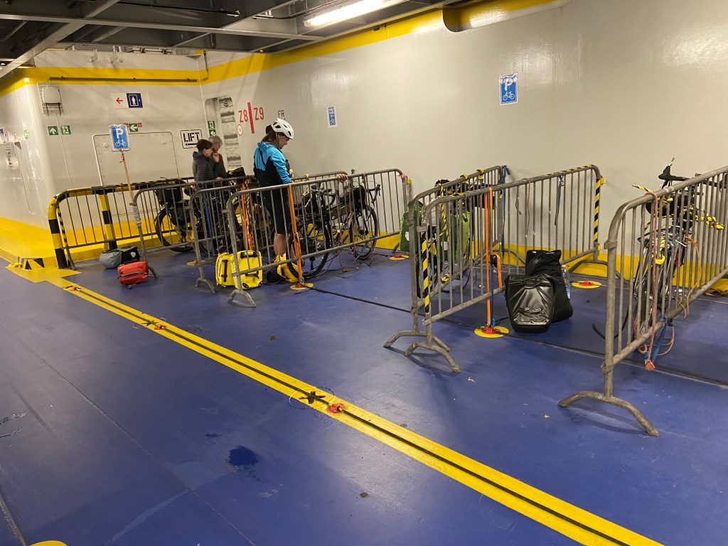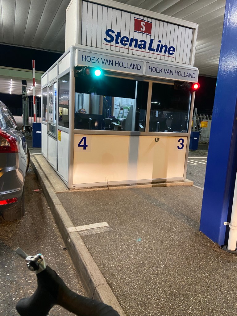 I arrived at Harwich International just as they started boarding. Myself and the other two-wheelers (and one trike) got to board first – up and around a Gerry Anderson style collection of concrete ramps, and then into the belly of our vast ship.