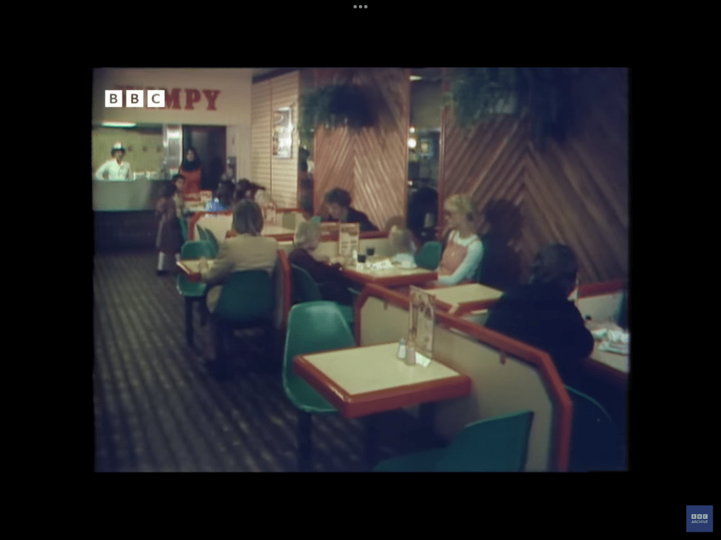 Along the way, we meet a Wimpy executive, Peter Swale, speaking from the chain’s Piccadilly Circus branch, freshly converted into a counter-service fast food restaurant.