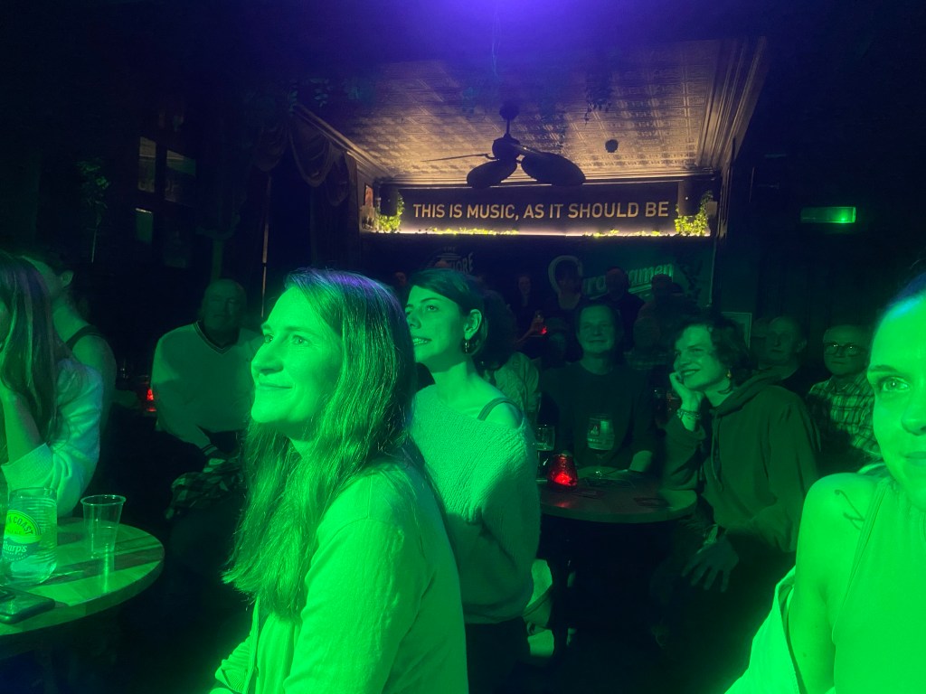 But my favourite act of the night was Laurie Black. Songs about women in space and small venues, incredible synth magic, and such a magnetic stage presence. She couldn’t have been any different to Sid Griffin’s troubadours, but the audience were with her from the first chorus. There’s a photo of them, rapt, bathed in light, which comes from that magical moment when I realised everything was going to be ok.