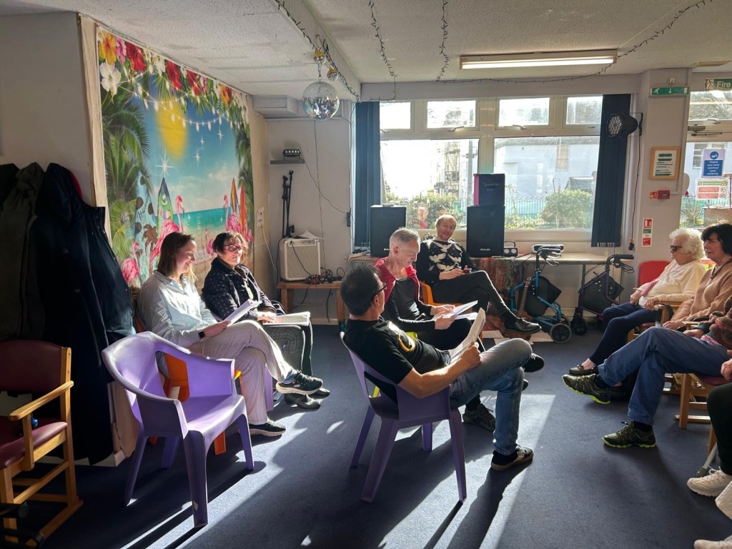 Today I and my fellow theatre pigeons performed some sketches and some songs to some retired lads at a community centre. Last time we did A Christmas Carol; this time we were determined to do something less depressing. The sketches, written by a friend of Kat’s, were pretty good, and I enjoyed being a policeman in metaphorical spandex and an annoying nepo baby actor demanding a role with exactly one line and five words.