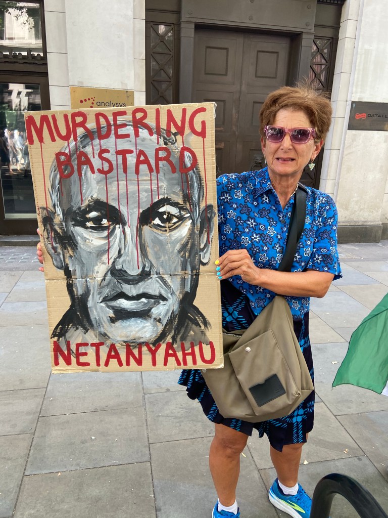 Walking across Waterloo Bridge towards Russell Square for Saturday’s peace march, my friend Sara and I came across seven or eight of these anti-protest protesters, with their Israeli and British flags and puce-white, middle aged faces.