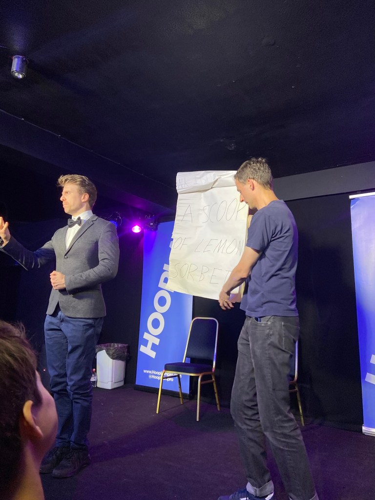 It was now time for Next Level Sketch. And dang, we were good. I should even say *they* were good, as I hadn’t written anything for this set, and wasn’t performing, tho as Paul pointed out afterwards, I had cast it. Everything was pieced together via a specific narrative, in this case the conceit that Sir Kier Starmer is asleep and dreaming many odd things. This worked really well – who knew that audiences enjoy narrative structure – and a special mention for Annabel Edmonds who put all of her natural exasperated energy into the role of Sir Kier Starmer’s Wife, Sir Wife Starmer.