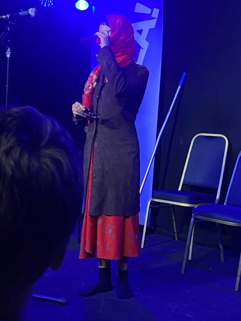 Our (probably) most famous act of the evening, Sam Nicoresti, arrived stressed, as she had a new cat that she didn’t want to leave for too long. So stressed, in fact, that I said Sam you can just go on first if you like, which she immediately agreed to. So I once again rejuggled my accidentally-too-big list of special guests in my head, told the people who needed to know, and told Dian to start the show.
