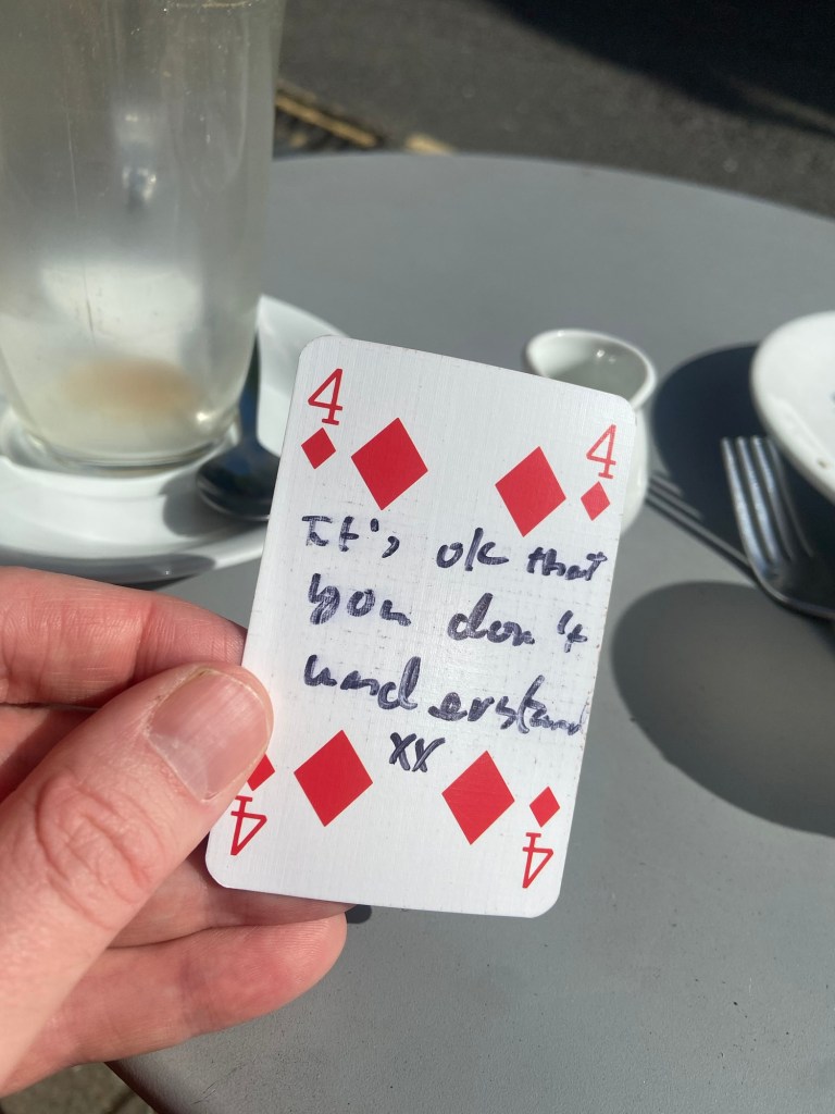 They like me just as I am. I know all this, implicitly, and explicitly. And yet I still feel I’m letting them down if I don’t be that version of myself that exists , seemingly, at the bottom of an empty pint glass: the outgoing, networking, rabble-rousing, extraordinary soul who makes things happen, not the guy who is very much already mentally looking forward to the train home.