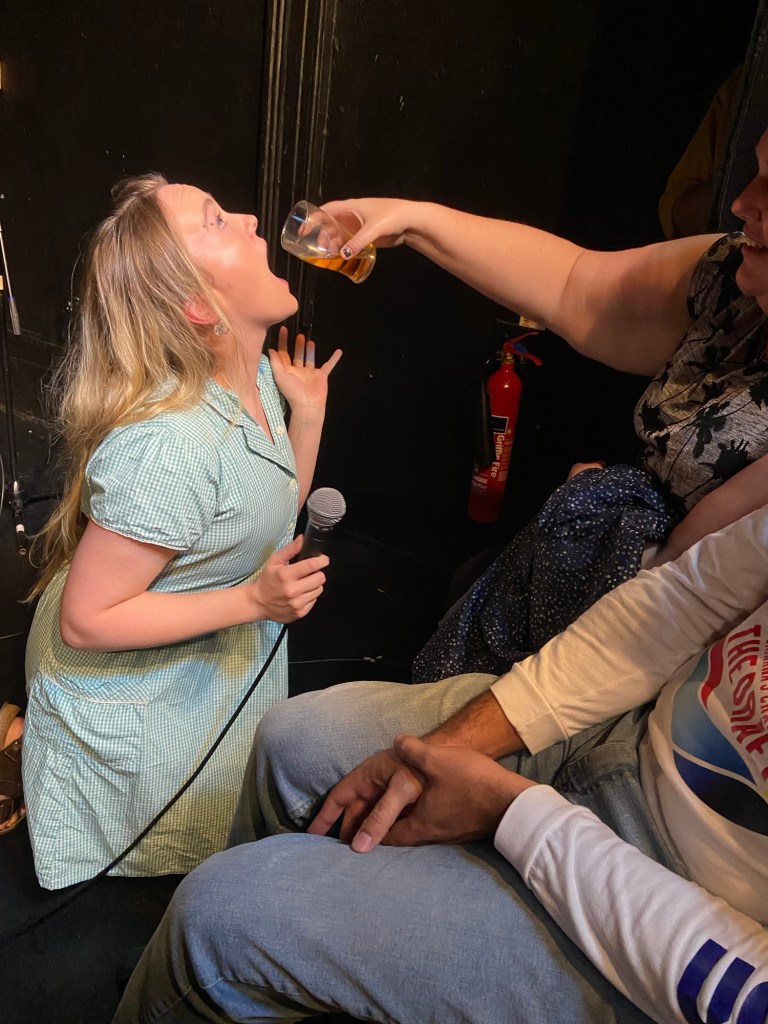 We start with a rubbish clown – literally. Eliza Nelso is Cabbage, bright green and in worker’s overalls. She reaches the stage via clambering over the audience with assorted brushes, dust pans, and impossible-to-open bin liners. Her physical comedy is on point, and is mixed with drag and lip-sync elements – this blending of the queer and alternative comedy worlds has been rendered far more political and explicit in recent years thanks to the effort of brilliant, unapologetic young artists like Nelso.