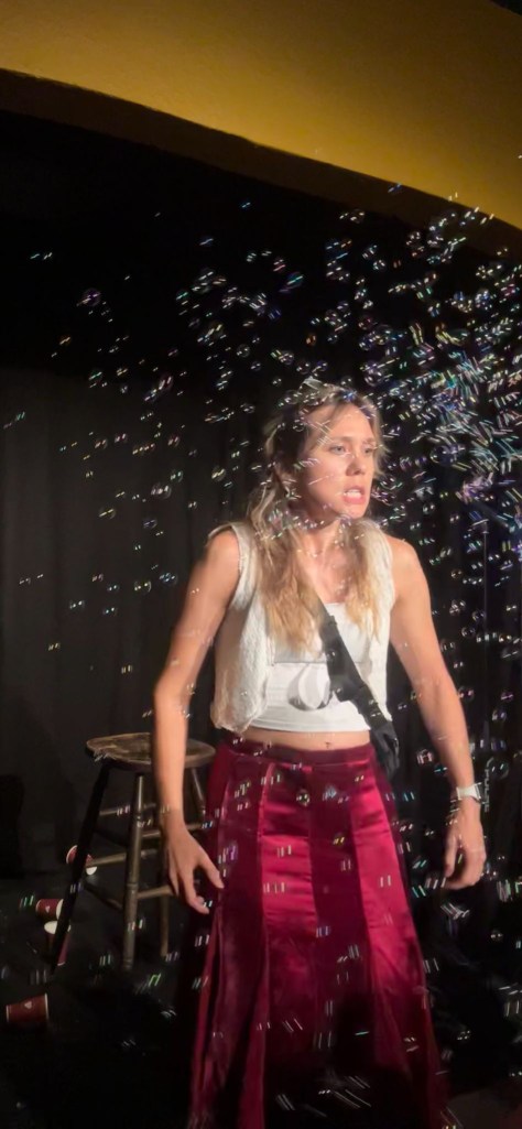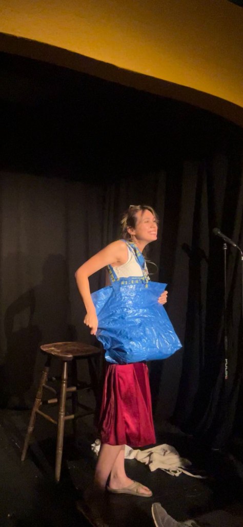 I know Lilla through Mr Paul Creasy and Michelle Improv, once correctly describing her in a review as the chaos element of that group. Here, she presented what felt like a middle class millennial meltdown, filled with awful therapists, bubbles, and stolen ikea bags.