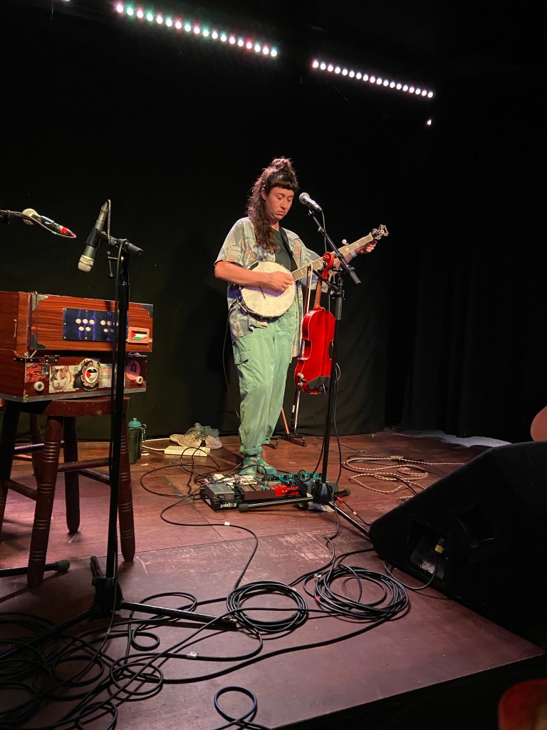 A Bristol based folk/psych and dream folk trio, Bec Garthwaite, Beth Roberts and Claire Vine all write, sing, and take turns as frontperson. The harmonies are as beautiful as a crystal church, and the instrumentation – taking in banjo, fiddle, and Vine’s Palestine flag splattered harmonium – is beautiful, delicate, and sparse.