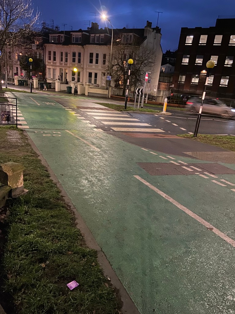 Plus – and I have no science to back this up – the shiny blue and green paint that so defines a cycle lane always seems to be a bit slippier than the main carriageway.
